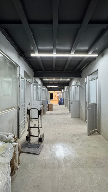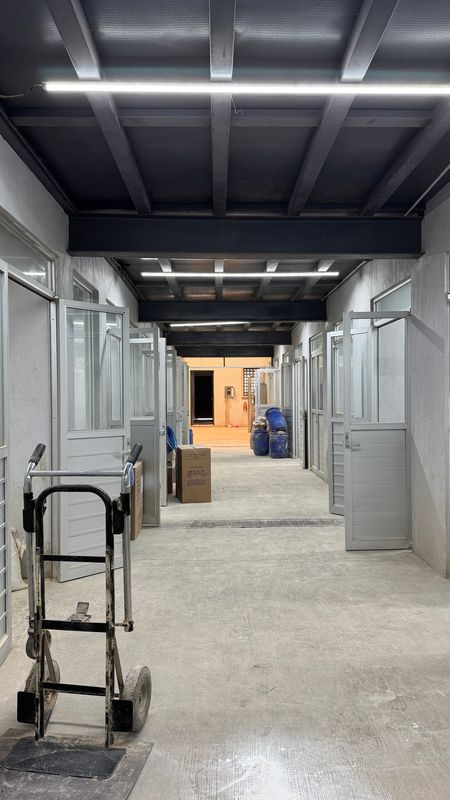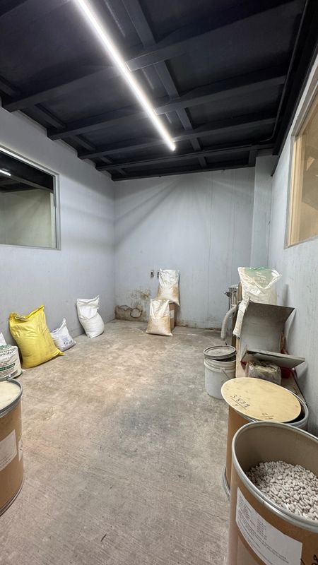 Bodega en renta para producción. Tiene 19 espacios individuales para producción aislada, cada uno con toma de agua y electricidad. Mezanine para almacenaje de 270 mts2. Oficinas en 2 niveles, comedor.